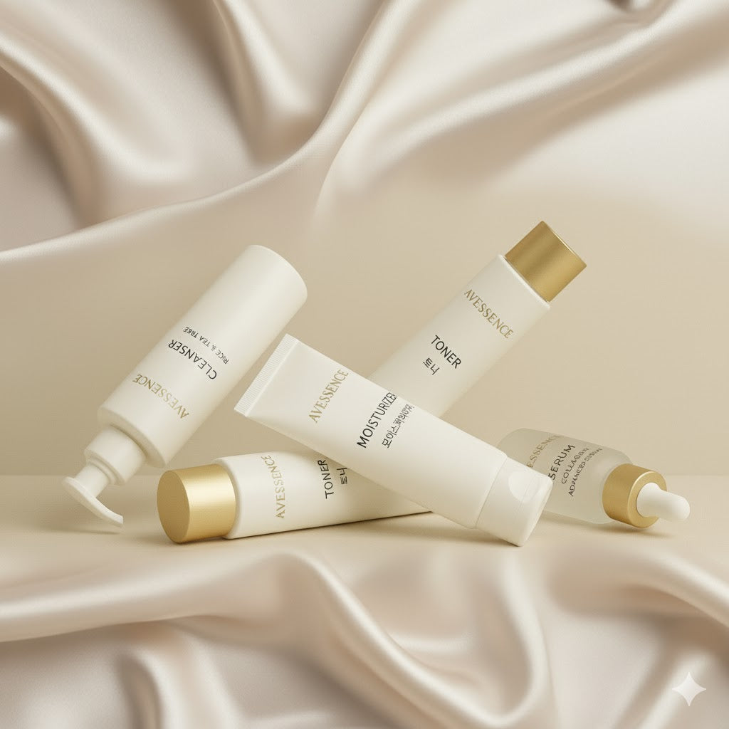 Experience our Korean skincare set infused with pure collagen, Rice, Tea tree, hyaluronic acid, and essential vitamins. crafted to cleanse, hydrate, and reveal your most radiant glass skin.
